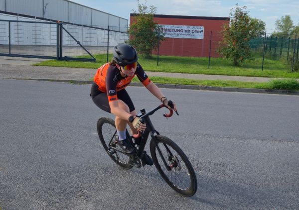 Dieses Jahr standen wir mit insgesamt fünf Teammitgliedern am Start. Zuerst gingen Ralf, Fabio und Kaja im Jedermann- bzw. Jederfrauenrennen an den Start, bei dem 18 Runden zu absolvieren waren. Bereits nach zwei Runden gelang es Kaja nicht mehr, im Feld zu bleiben – also hieß es ab jetzt: allein durchziehen. Auf den letzten vier Runden schnappte sie sich schließlich noch ein Hinterrad, das sie ins Ziel brachte – und mit knapp unter einer Stunde sicherte sie sich den ersten Platz in der Frauenwertung. Fabio und Ralf hielten sich stark im Feld. Nach dem Schlusssprint erreichte Fabio den 6. Platz, Ralf kam auf Rang 8.