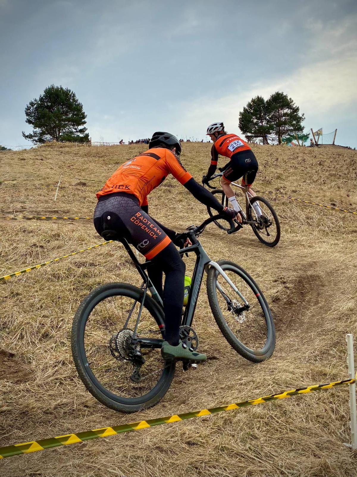 Das direkt darauffolgende all gender Cx Rennen wurde kurzer Hand in U und Ü40 aufgeteilt, um die Größe des Starterfeldes etwas zu reduzieren. Für Maksim endete das Rennen leider direkt nach dem hektischen Start, ein Mitfahrer riss mit der Pedale das Tubelessventil raus, somit war die Luft raus. Evengenii fuhr ein starkes Rennen und kam als 6ter ins Ziel. Leider stürzte Lukas in einer Abfahrt und beendete sicherheitshalber das Rennen.